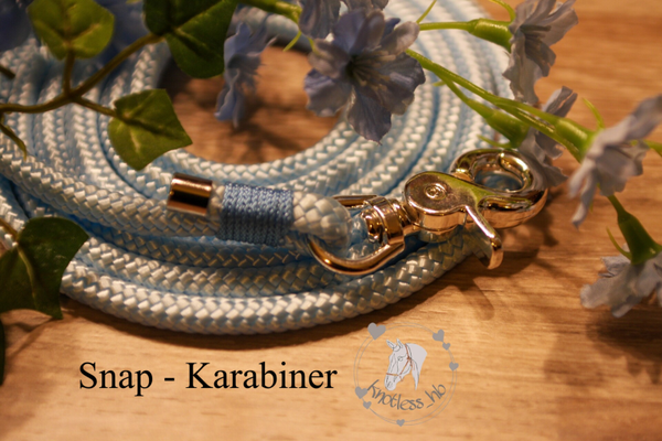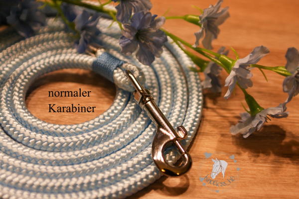 Geringes Gewicht und dadurch die Möglickeit einer feinen Kommunikation. Individuelle Anpassung an die Arbeit mit deinem Pferd, durch die verschiedenen Längen, so wie du es brauchst. Auch als längerer Führstrick nutzbar. Beide Karabiner ermöglichen ein schnelles und einfaches Ein- und Aushaken. Wahlweise mit Snap-Karabiner oder normalem Karabiner (siehe Bilder).