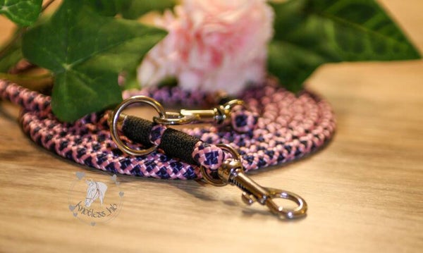 3-fach verstellbare Leine aus leichtem Seil und somit perfekt für schöne Spaziergänge. Für kleine Hunde mit kleinen Karabinern und 6mm dickem PPM-Seil. Für große Hunde mit großen Karabinern und 10mm dickem PPM-Seil (siehe Bilder).